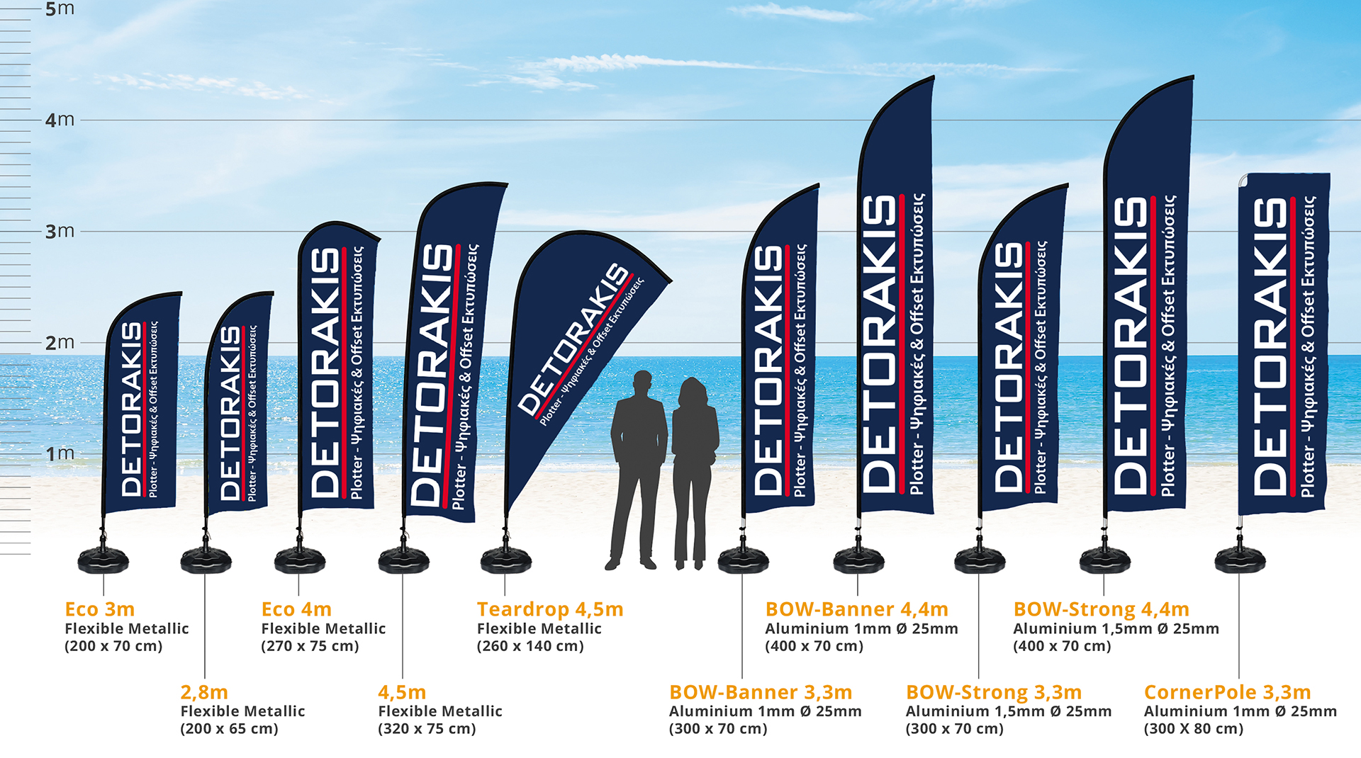 Μπορούμε να τυπώσουμε σε πολλά διαφορετικά υλικά μεγάλης αντοχής στο χρόνο και στις καιρικές συνθήκες όπως: Χαρτί, Μουσαμάς, Αυτοκόλλητο βινύλιο, Διάτρητο αυτοκόλλητο (one way), Ταπετσαρία, Καμβά, Backlit – Pvc – Plexiglass – Pvc Forex – Kp fix, Floor graphics, Σημαίες, Υφάσματα.